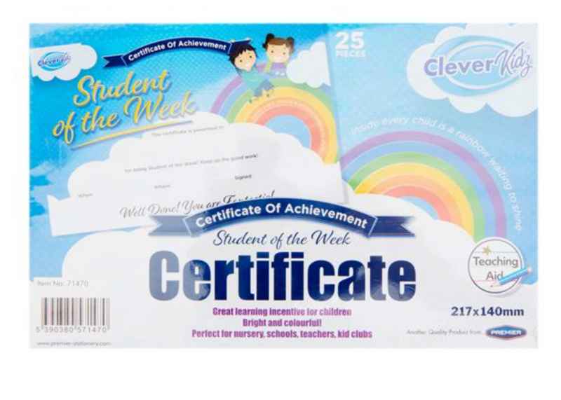 Clever Kidz Pkt.25 Reward Certificates - Student Of The Week