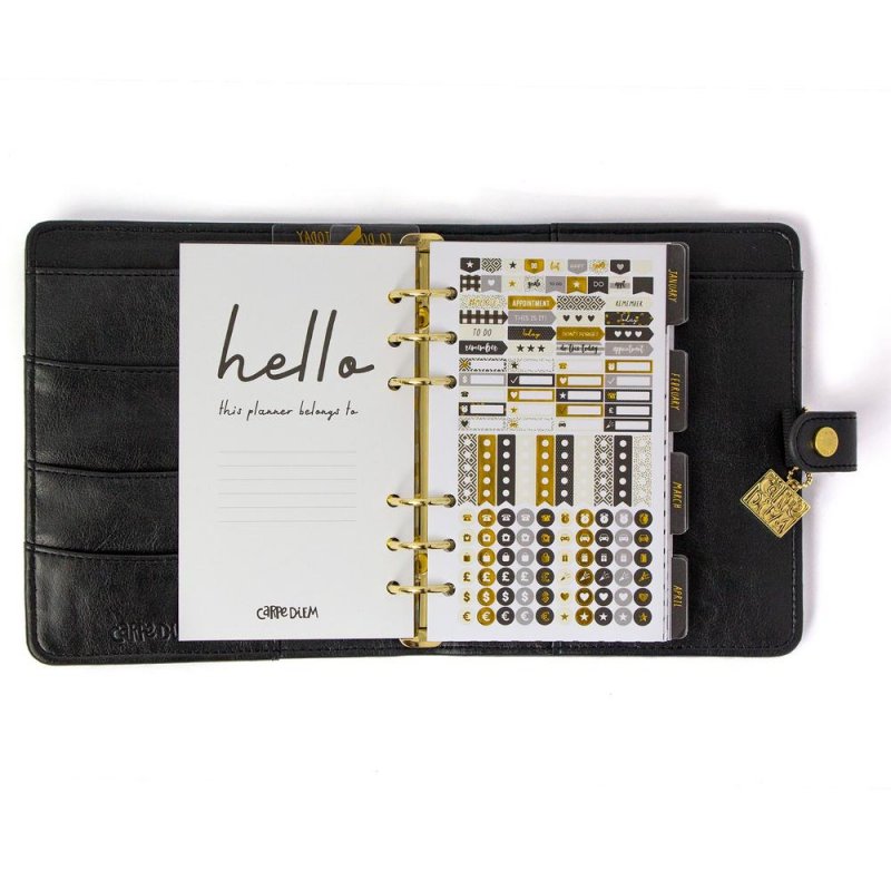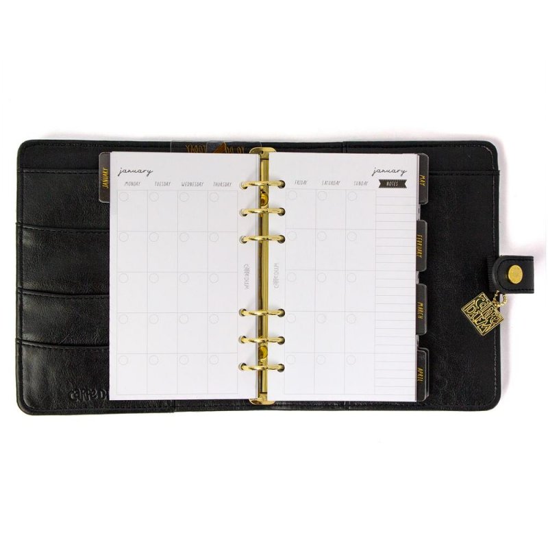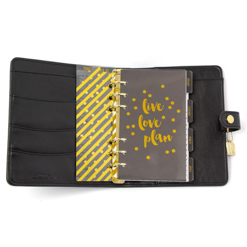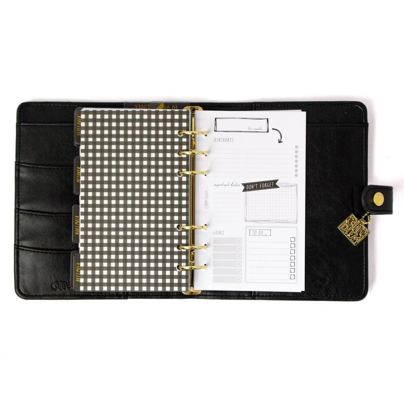 The Personal Planner (undated) is the solution for those who like on-the-go organizing. Includes 12 Monthly Tabbed Dividers, 12 Monthly Calendar Layouts, 60 Horizontal Weekly Layouts, 12 Lined Pages, 12 Grid Pages, 12 Plain Pages, 2 Acetate Bookmarks, 1 Acetate Dashboard, 1 Dashboard Insert, 3 Sticker Sheets. 8" x 7.5" x 2" |
