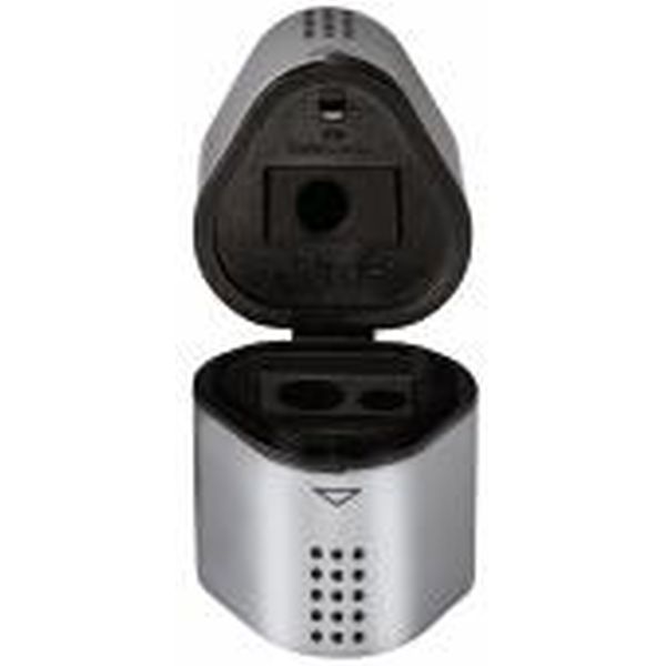 Trio sharpening box for graphite and colour pencils, standard and jumbo sizes; Ergonomic triangular shape; Large container for waste; Colour: silver