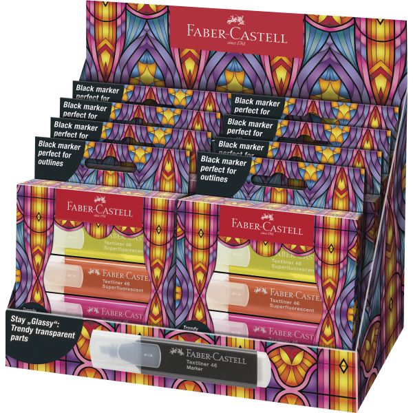 faber-castell HIGHLIGHTER “GLASSY ” FLOURESCENT BOX OF 4