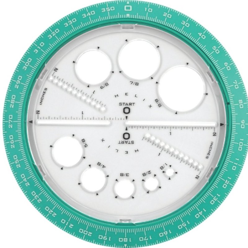 And the 8 integrated circle templates built into the inner ring for drawing accurate small circles far easier than using a standard compass.