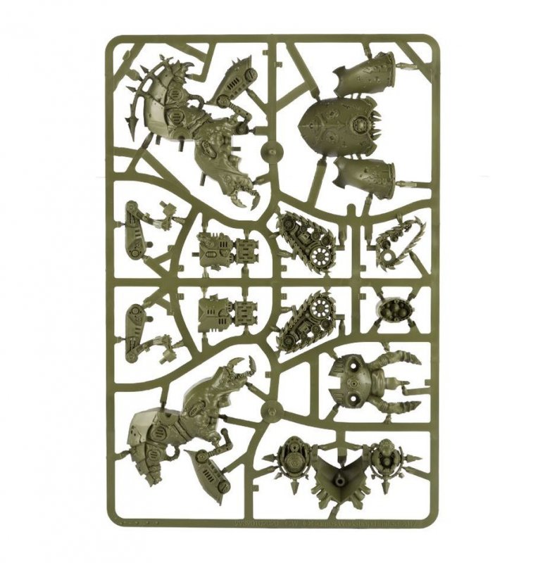 Myphitic Blight-haulers use their all-terrain mobility and heavy armaments to hunt down the enemy’s tanks and provide fire support even in the most dangerous environments. Should the enemy get too close, these Daemon Engines pounce with fanged maws and sprays of bile.