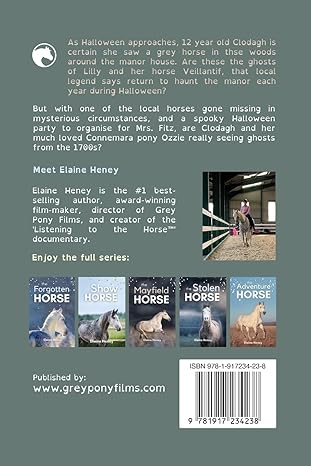 As Halloween approaches, 12 year old Clodagh is certain she saw a grey horse in the woods around the manor house. Are these the ghosts of Lilly and her horse Veillantif, which local legend says return to haunt the manor each year during Halloween? But with one of the local horses gone missing in mysterious circumstances, and a spooky Halloween party to organise for Mrs. Fitz, are Clodagh and her much loved Connemara pony Ozzie really seeing ghosts from the 1700s? Join Clodagh and Ozzie on their next exciting adventure to find out. This wholesome and beautifully told horse story is perfect for horse-crazy kids aged over 8.