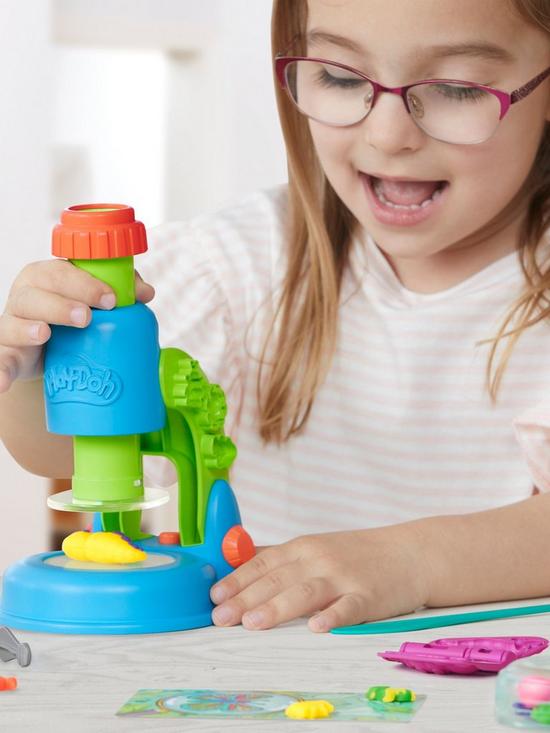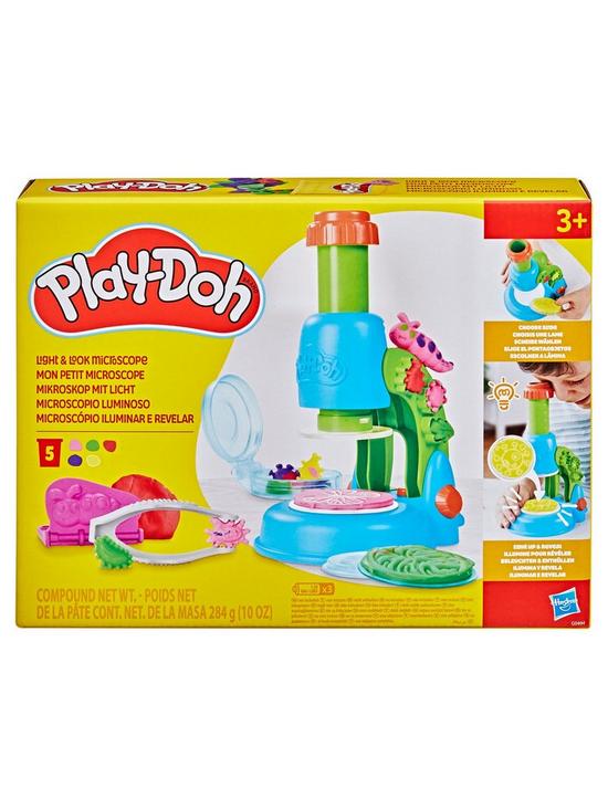 Wonder and imagination shine bright with the Play-Doh Light and Look Microscope set! The light-up microscope toy adds a cool glow effect to Play-Doh creations that kids can make on the four clear slides.
