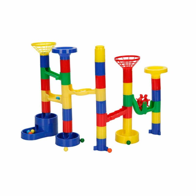 Build towers and bridges with wheels, slides, ramps and more. Marble Run game has lots of brightly colored track pieces that can be combined in all kinds of combinations to personalize your marble track.