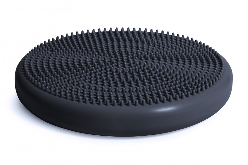 Versatile inflatable cushion can be used while sitting, standing, or lying on the floor. It can be used while seated to release accumulated energy, improve concentration and promote a good sitting posture. Used while standing it enhances proprioceptive and balance skills.