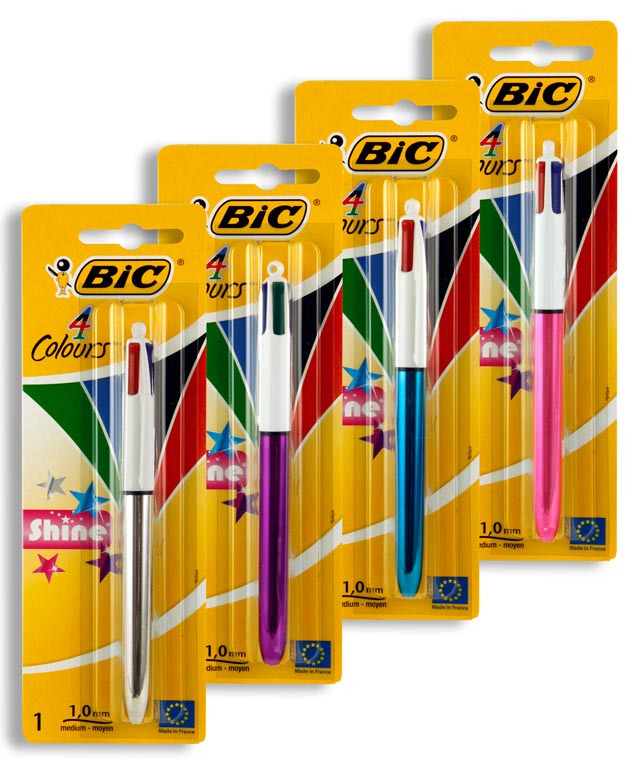 BIC 4 COLOUR BALLPOINT PEN - SHINE (CARDED) 4 ASST
