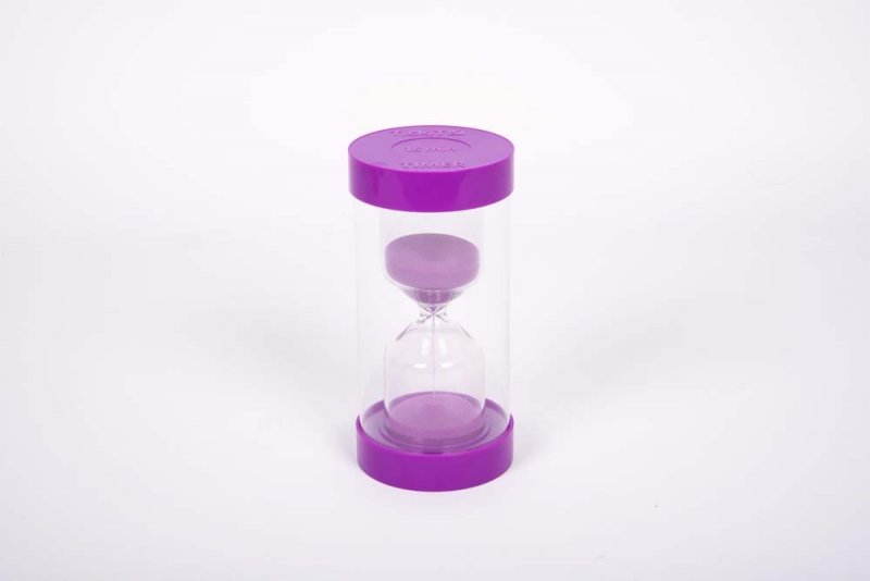 Our new range of excellent value robust sand timers offer the same traditional visual demonstration of the passing of time, but with a new rounded design including a shatterproof plastic barrier to protect the sleek modernised glass bulb inside. Easy to understand for young children, ideal for use in timed games or activities and for timing experiments in maths or science. Colour coded to match the other sand timers in our TickiT range, with clearly marked times on the end caps. Includes information sheet. Size: 150 x 72mm dia. Single sand timer.