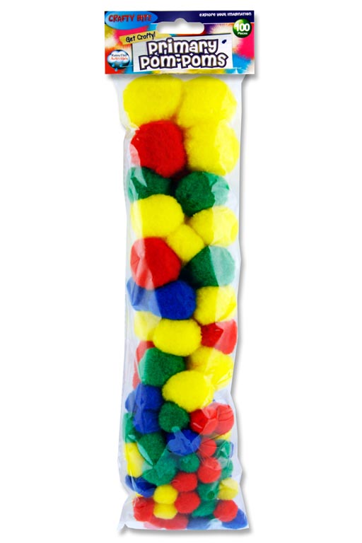 CRAFTY BITZ PKT.100 ASST SIZES POM POMS - PRIMARY