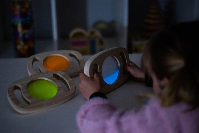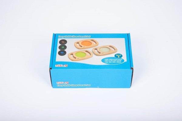Tickit® Easy Hold Glow Panels have solid rubberwood frames with easy to hold handles, enclosing different colourful glow-in-the-dark inserts that will fascinate your child and help them engage with the world around them in a unique way. The luminescent orange, blue or green panels offer a new magical, vibrant and sensory perspective of their environment, and when turned and twisted the glowing liquid swirls to create captivating movement. Perfect for sensory discovery and encouraging descriptive vocabulary.