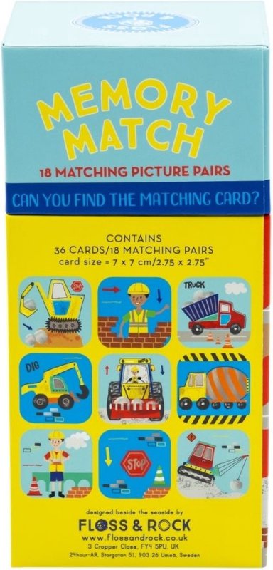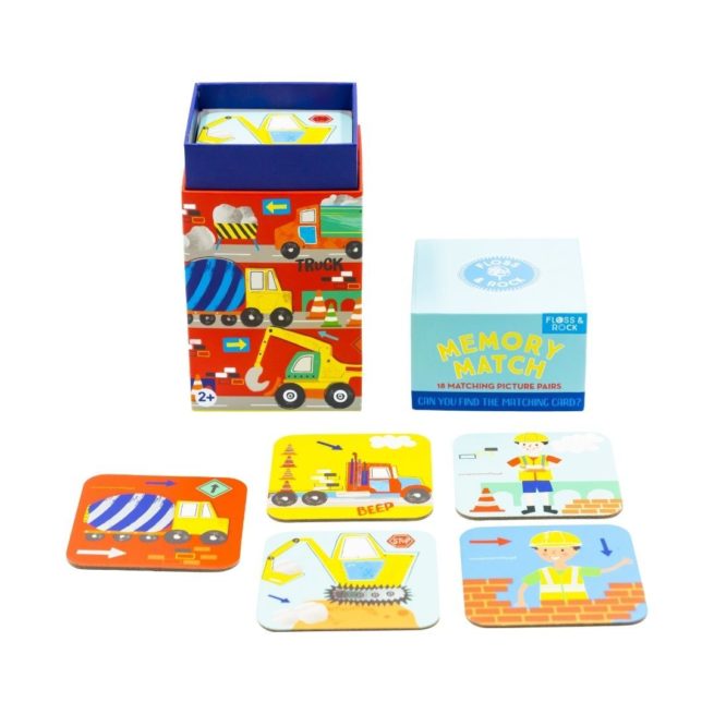 Product Description: Power up the fun with Memory Match – Construction, a game designed to challenge and entertain young builders. Perfect for toddlers and young children, this engaging memory game features construction-themed cards that encourage players to find and match picture pairs.