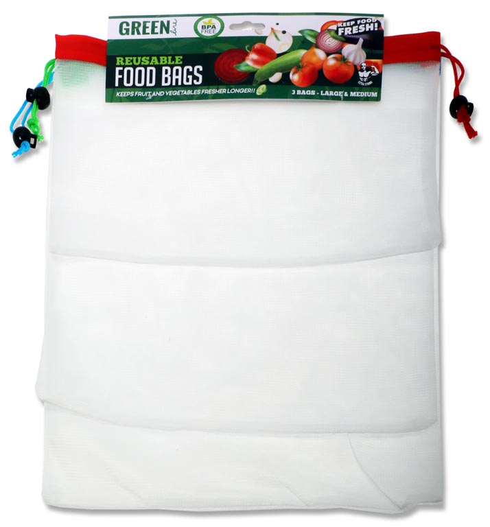 CLEARANCE GREEN LINE PKT.3 BPA FREE REUSABLE FOOD BAGS - SIZE M & L