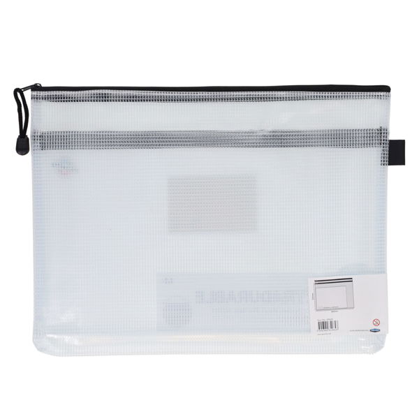Premto A4+ Extra Durable Double Pocket Mesh Storage Wallet - Clear Pearl