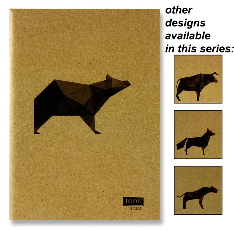ICON A5 80pg 110gsm KRAFT SKETCH BOOK ANIMALIA DESIGN 4 ASST.
