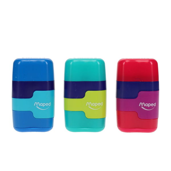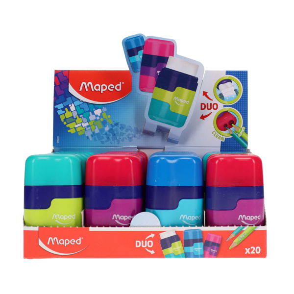 Maped Compact Duo Twin Hole Sharpener & Eraser - 3 Asst CDU
