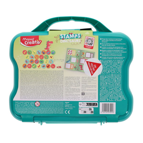 Go on a learning adventure with an activity book with Dinosaur stamps.