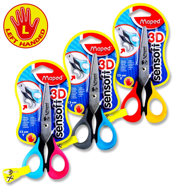 MAPED SENSOFT 13cm/5" SCISSORS CARDED - LEFT HANDED 3 ASST.