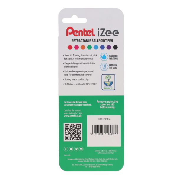 Pentel Izee Card 4 Retractable Ballpoint Pen Asst