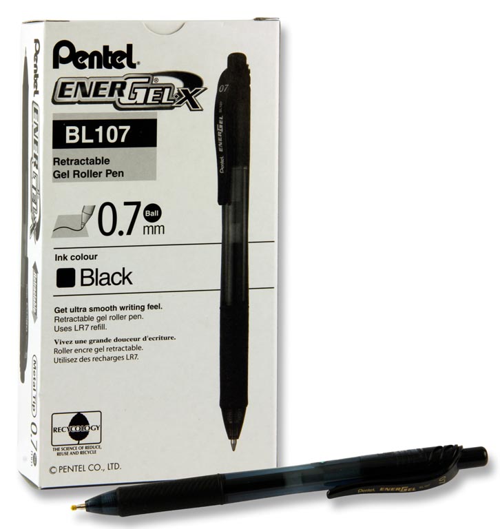 PENTEL ENERGEL-X BL107 0.7mm RETRACTABLE GEL PEN - BLACK