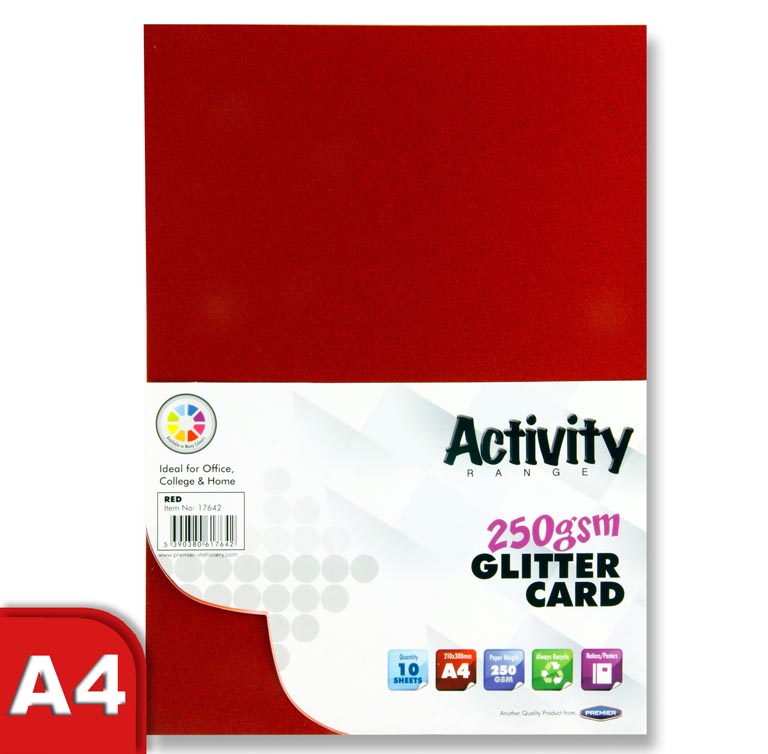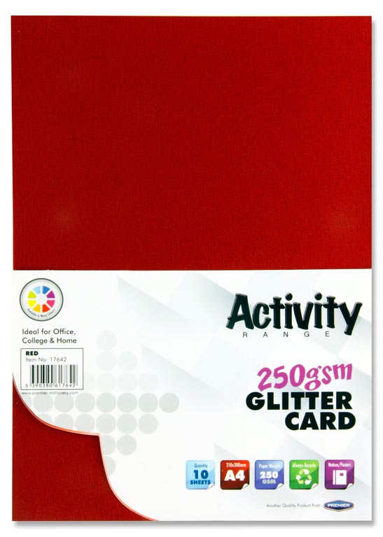 PREMIER ACTIVITY A4 250gsm GLITTER CARD 10 SHEETS - RED