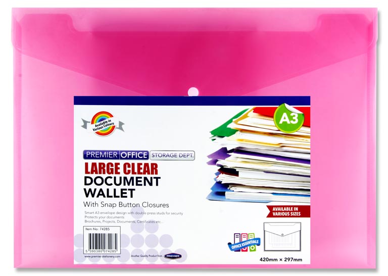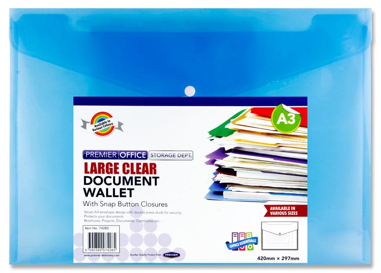 PREMIER OFFICE A3 BUTTON DOCUMENT WALLET 4 ASST.