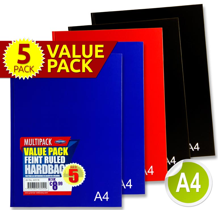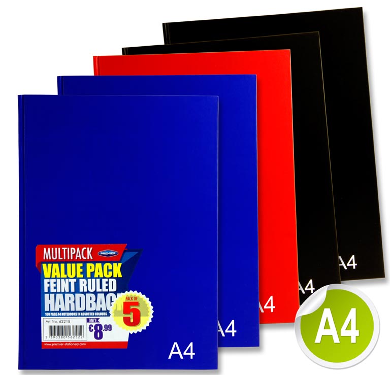 PREMIER PKT.5 A4 160pg HARDCOVER NOTEBOOK 3 ASST BOLD