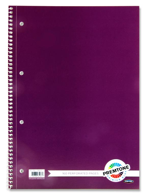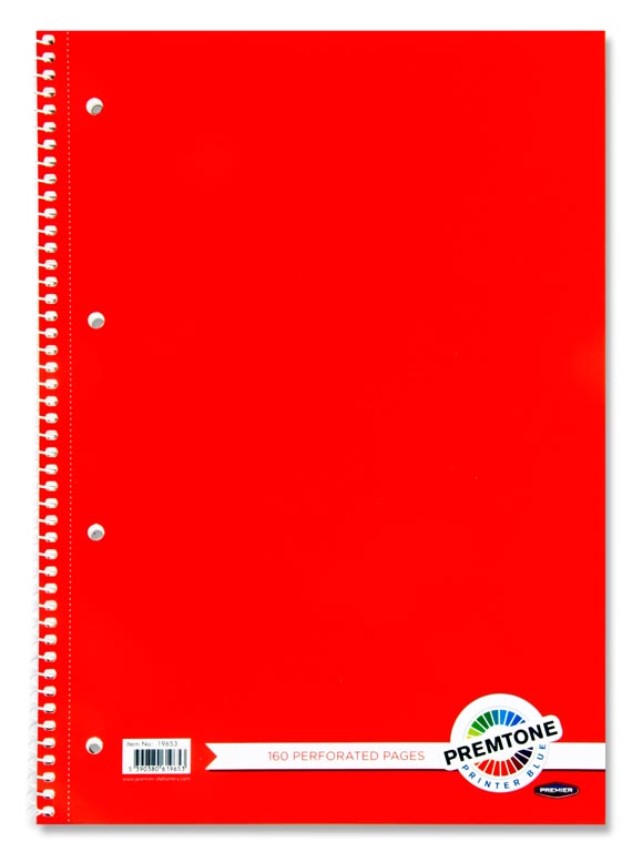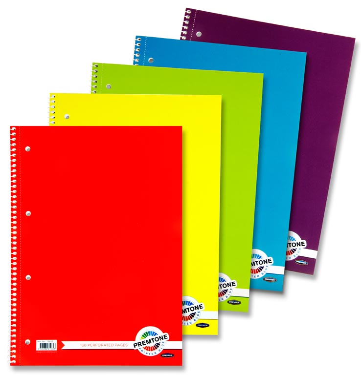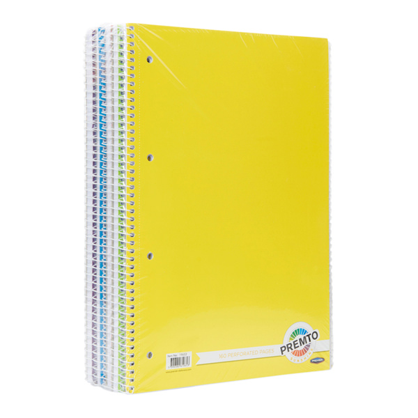 PREMTO A4 160pg SPIRAL NOTEBOOK 5 ASST.