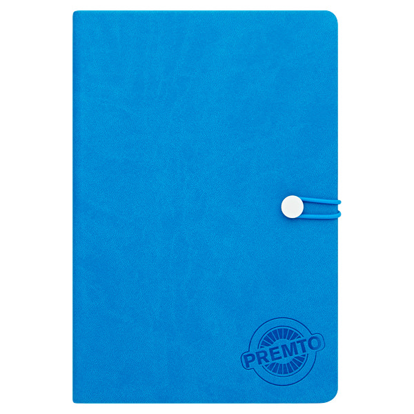 PREMTO A5 192pg HARDCOVER PU NOTEBOOK W/ELASTIC - PRINTER BLUE