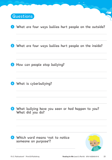 • Questions consolidate reading and comprehension and allow teachers to check that children actually read and comprehend the texts.