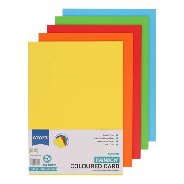 Concept A4 160gsm Card 250 Sheets - Rainbow
