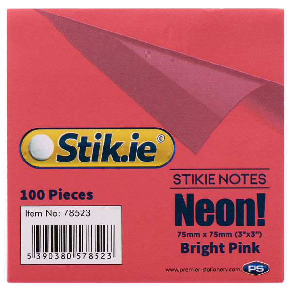 Stik.ie Stik.ie 75mm x 75mm Neon Sticky Notes - 4 Asst
