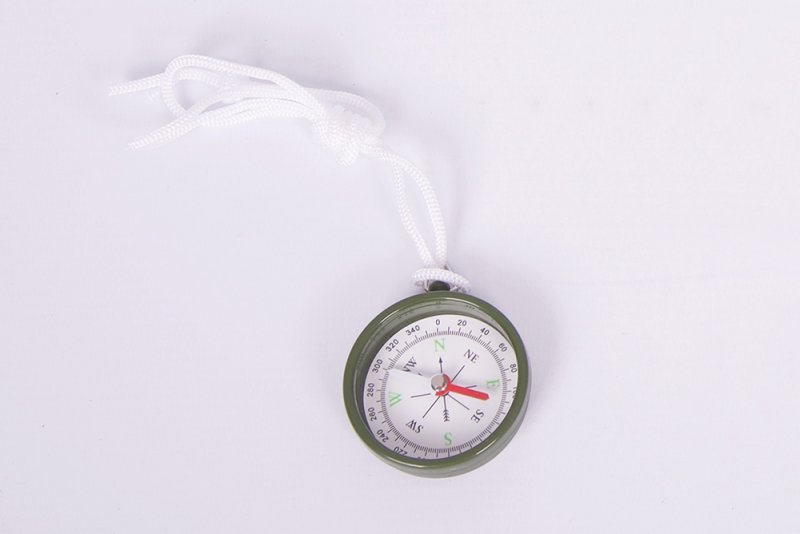 Tough plastic cased compass with lanyard, Marked with 4 compass points and full 360 degree scale around its edge.