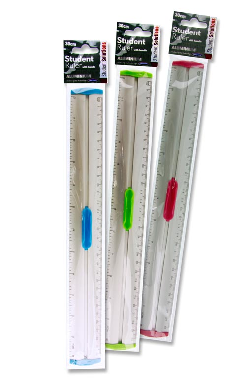 STUDENT SOLUTIONS 30cm ALUMINIUM RULER WITH GRIP 3 ASST.