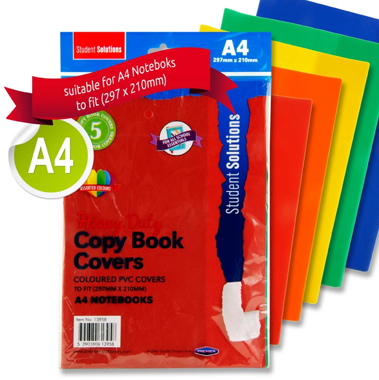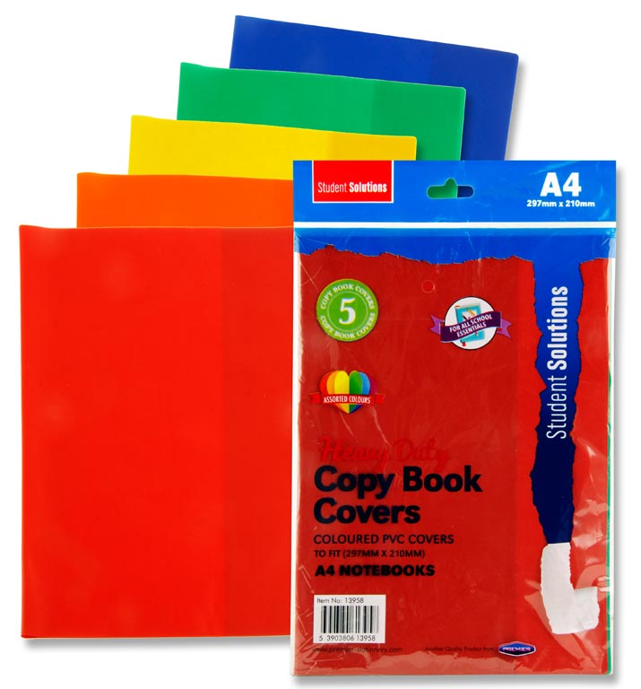 STUDENT SOLUTIONS PKT.5 A4 PVC HEAVY DUTY COPY BOOK COVERS - 5 ASST COLOURS