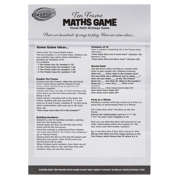 Clever Kidz Ten Frame Maths Game - 44 Pce