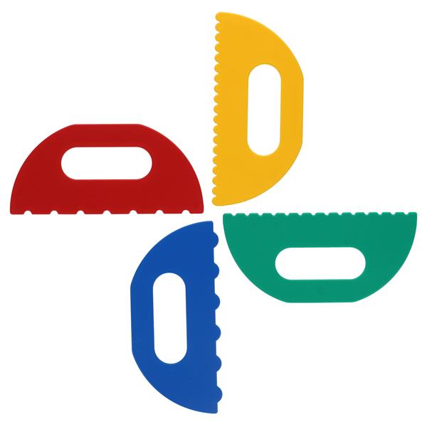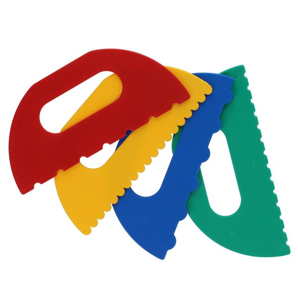 Assorted heavy duty scrapers to create effects in thickly applied paint, clay or sand.