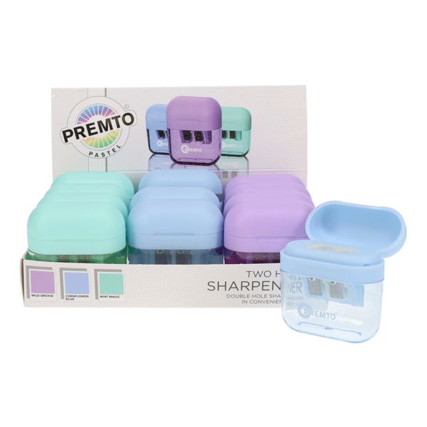 Premto Pastel Twin Hole Sharpener - 3 Asst CDU
