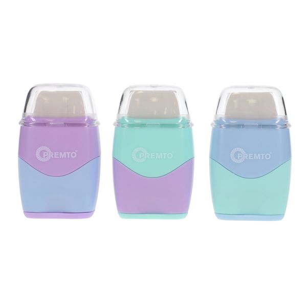 Premto Pastel Capsule Twin Hole Sharpener & Eraser - 3 Asst