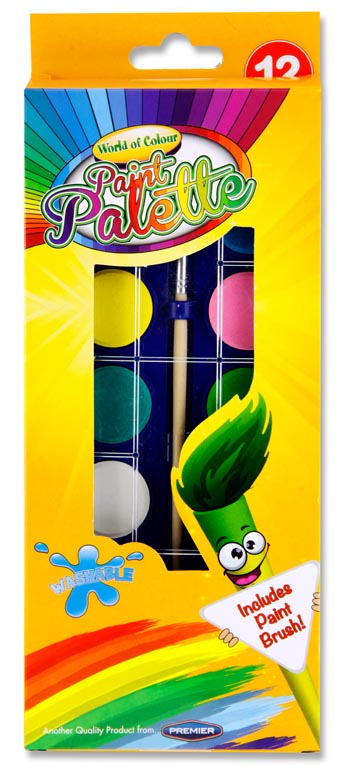 WOC 12 COLOUR WATERCOLOUR PAINT PALETTE SET WITH BRUSH